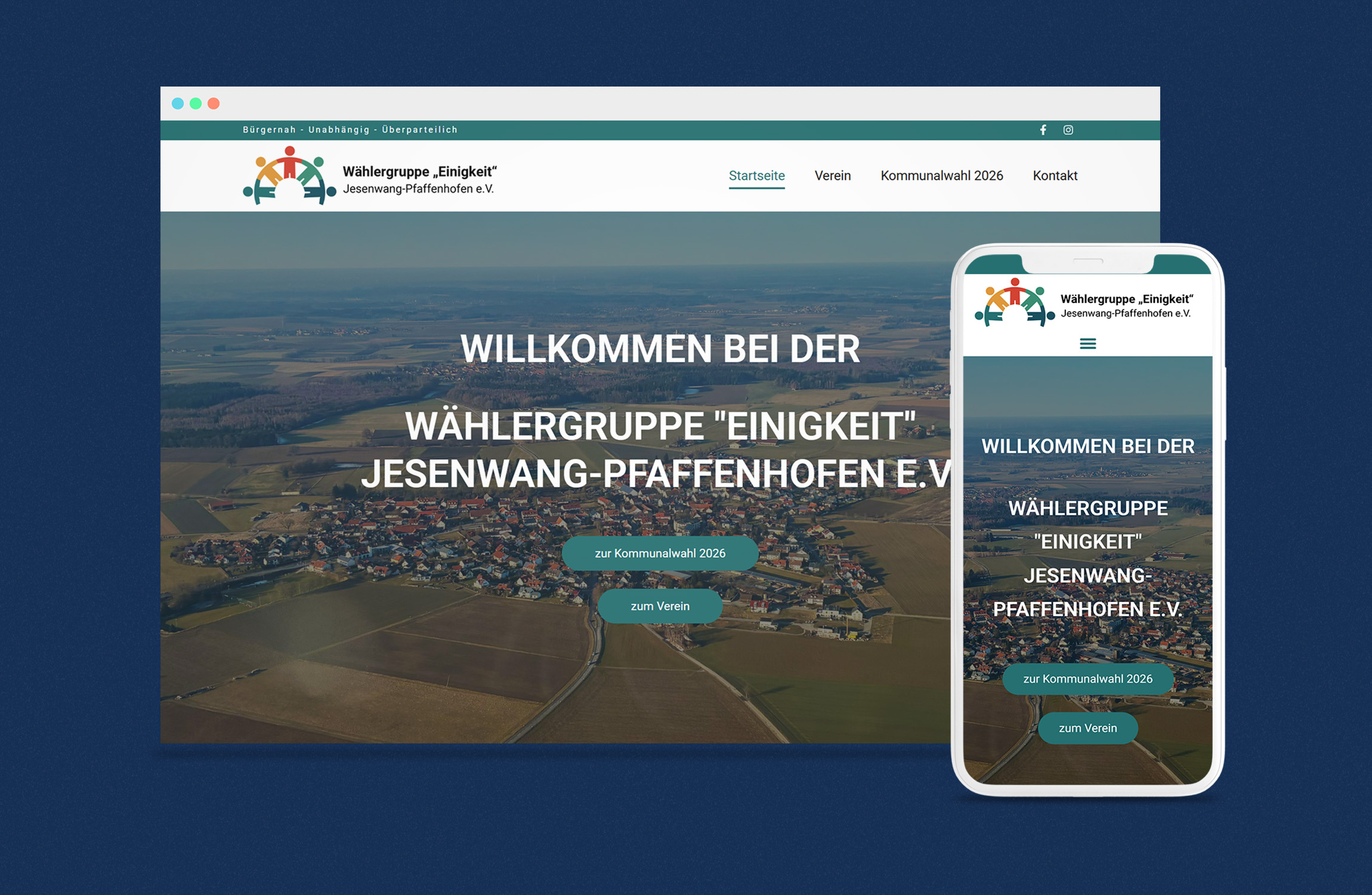 Für die Wählergruppe "Einigkeit" Jesenwang-Pfaffenhofen e.V. durfte ich in Vorbereitung auf die Kommunalwahl 2026, den öffentlichen Auftritt modernisieren. Hierbei wurde zunächst das bereits vorhandene Logo aktualisiert, passend dazu eine neue Website erstellt sowie ein Flyer und A2-Plakate erstellt. Herzlichen Dank für das Vertrauen und die Beauftragung!